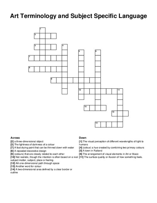 Art Terminology and Subject Specific Language Crossword Puzzle